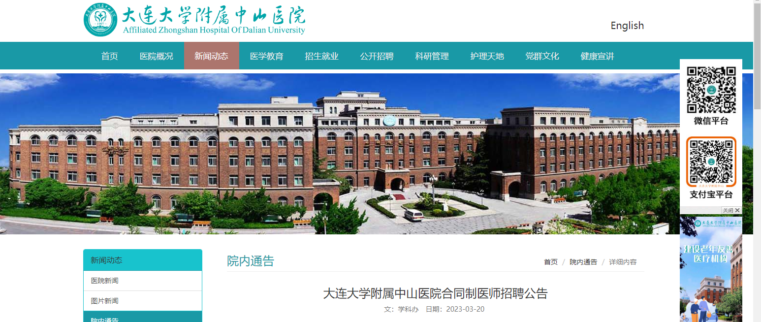 2023年遼寧大連大學(xué)附屬中山醫(yī)院合同制醫(yī)師招聘,報名時間:發(fā)布之日起,截止到2023年4月30日止,現(xiàn)將招聘公告原文發(fā)布如下: