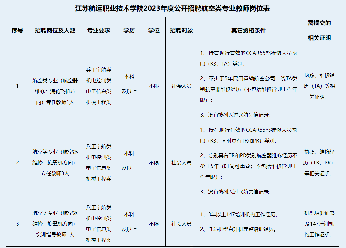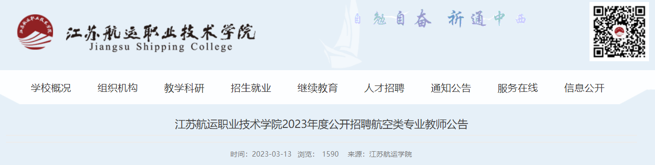 2023年度江蘇航運(yùn)職業(yè)技術(shù)學(xué)院公開招聘航空類專業(yè)教師公告已發(fā)布,報(bào)名截止時(shí)間為2023年3月27日。現(xiàn)將招聘公告原文發(fā)布如下: