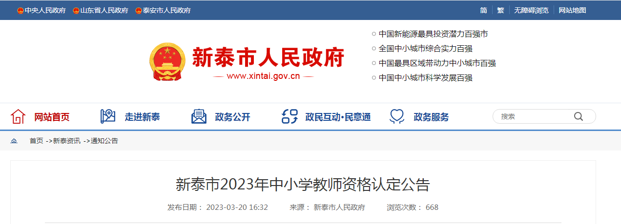 原文標(biāo)題:新泰市2023年中小學(xué)教師資格認(rèn)定公告