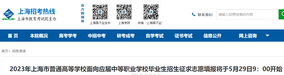 原文標(biāo)題:2023年上海市普通高等學(xué)校面向應(yīng)屆中等職業(yè)學(xué)校畢業(yè)生招生征求志愿填報(bào)將于5月29日9:00開始