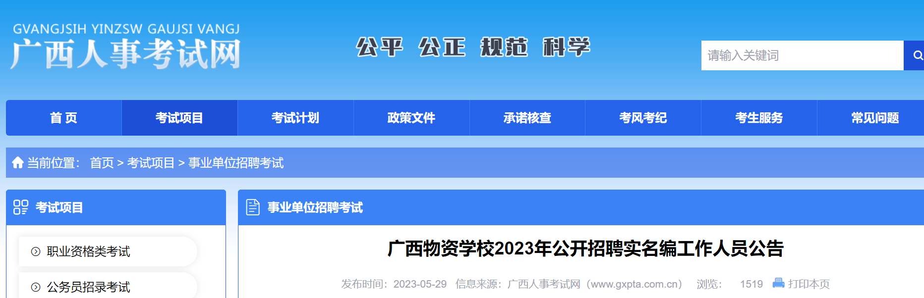 2023廣西物資學(xué)校招聘實名編工作人員6人,報名時間:2023年5月29日至6月7日,過期不再受理?,F(xiàn)將招聘公告原文發(fā)布如下: