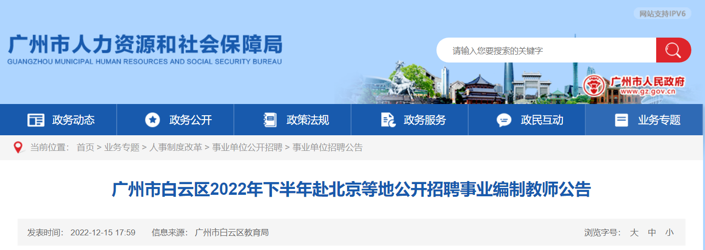 原文標(biāo)題:廣州市白云區(qū)2022年下半年赴北京等地公開招聘事業(yè)編制教師公告
