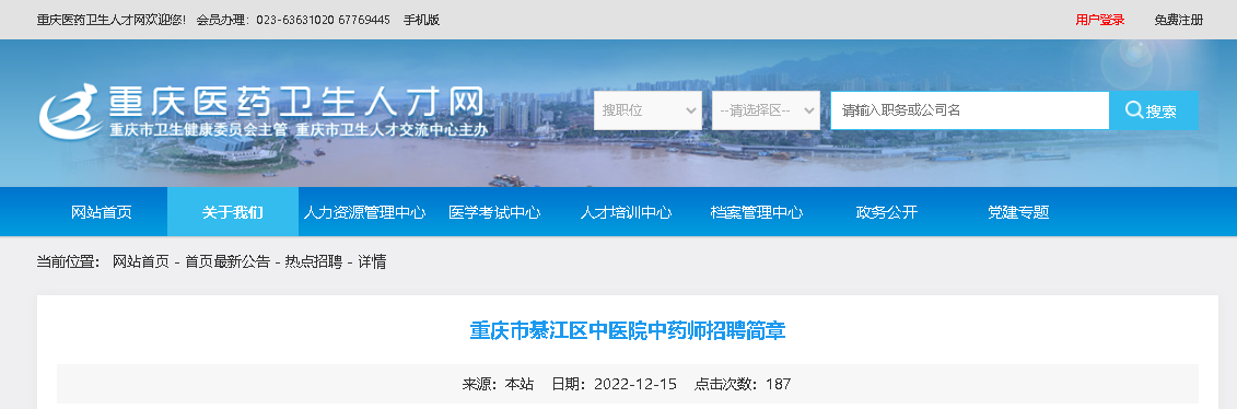 2022重慶市綦江區(qū)中醫(yī)院中藥師招聘3人,報名時間:2022年12月15日-12月19日,現(xiàn)將招聘公告原文發(fā)布如下: