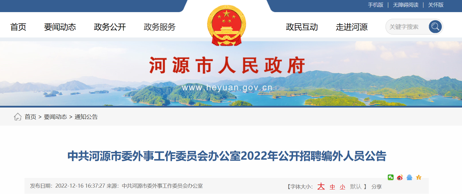 原文標(biāo)題:中共河源市委外事工作委員會(huì)辦公室2022年公開招聘編外人員公告