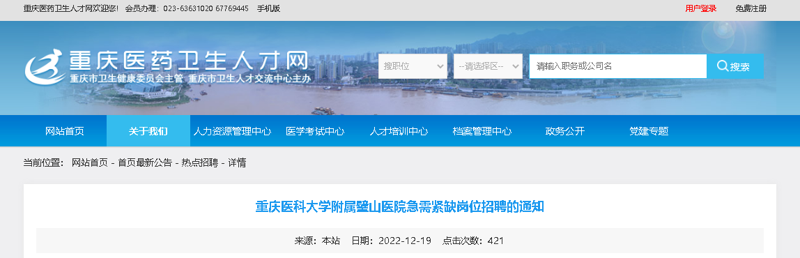 原文標(biāo)題:重慶醫(yī)科大學(xué)附屬璧山醫(yī)院急需緊缺崗位招聘的通知