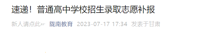 根據(jù)《隴南市教育局關(guān)于做好全市高中階段學(xué)校網(wǎng)上志愿填報(bào)和招生錄取工作的通知》(隴教基〔2023〕32號(hào))精神,現(xiàn)就全市普通高中學(xué)校招生第二輪補(bǔ)錄事宜公告如下: