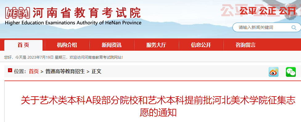 高考頻道從河南省教育考試院了解到,2023年河南藝術(shù)類本科A段部分院校和藝術(shù)本科提前批河北美術(shù)學(xué)院征集志愿的通知已公布,具體如下: