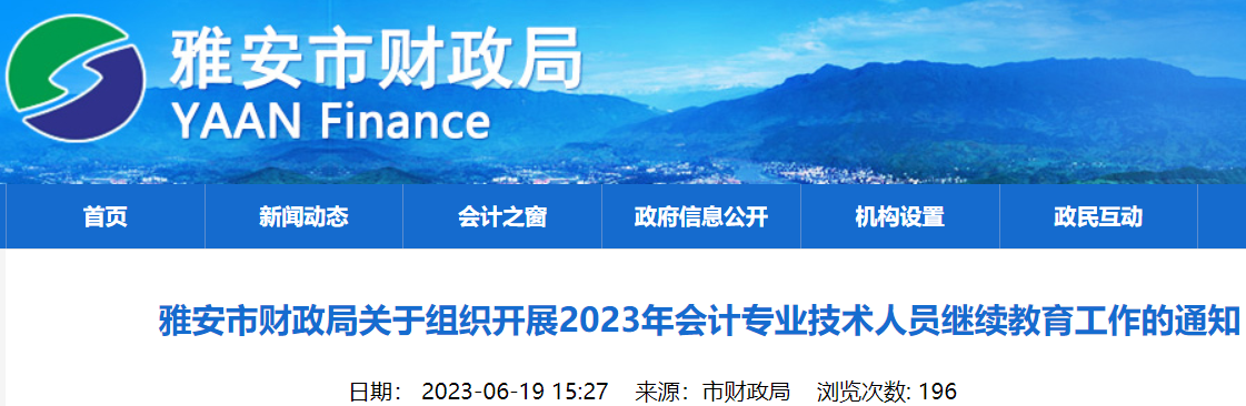 小編根據(jù)雅安市財政局發(fā)布“雅安市財政局關(guān)于組織開展2023年會計專業(yè)技術(shù)人員繼續(xù)教育工作的通知”得知,2023年四川雅安會計繼續(xù)教育時間為2023年12月31日前,考生可在規(guī)定時間內(nèi)學(xué)習(xí)!