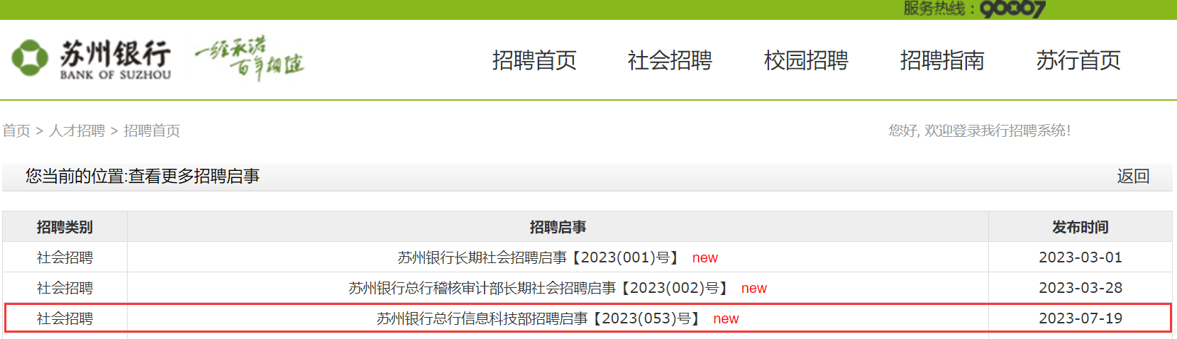 1.應(yīng)聘者個人信息僅用于此次招聘,蘇州銀行對未被錄用人員的材料將代為保密,恕不退還;