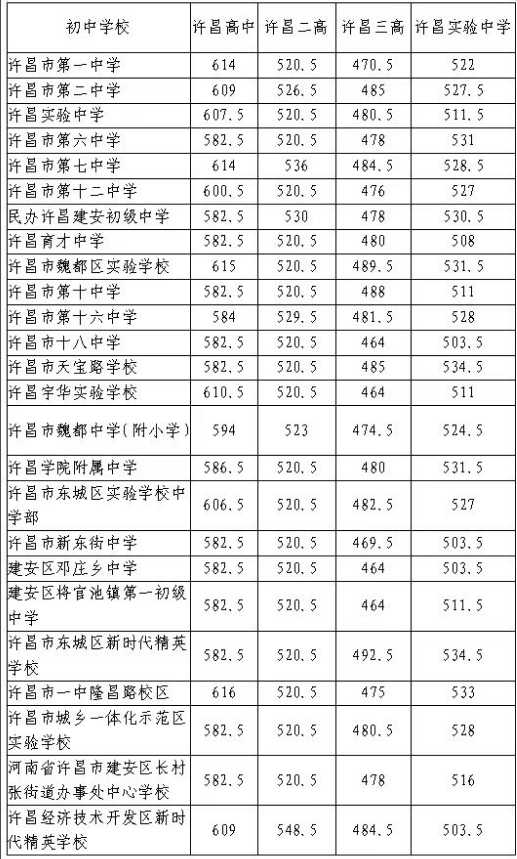 從許昌市教育局獲悉,2023年河南許昌市中心城區(qū)各高中錄取分?jǐn)?shù)線已公布,具體詳情如下: