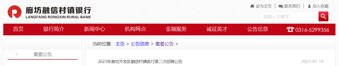 2023年河北廊坊開發(fā)區(qū)融信村鎮(zhèn)銀行第二次招聘10人,報(bào)名時(shí)間:2023年7月30日截止,現(xiàn)將招聘公告發(fā)布如下: