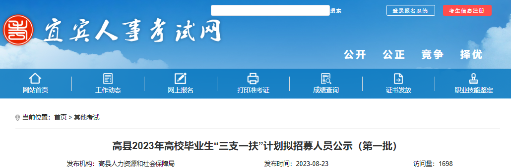根據(jù)《四川省2023年高校畢業(yè)生“三支一扶”計(jì)劃招募公告》規(guī)定,現(xiàn)將高縣2023年“三支一扶”計(jì)劃擬招募人員(第一批)公示如下(見(jiàn)附件):