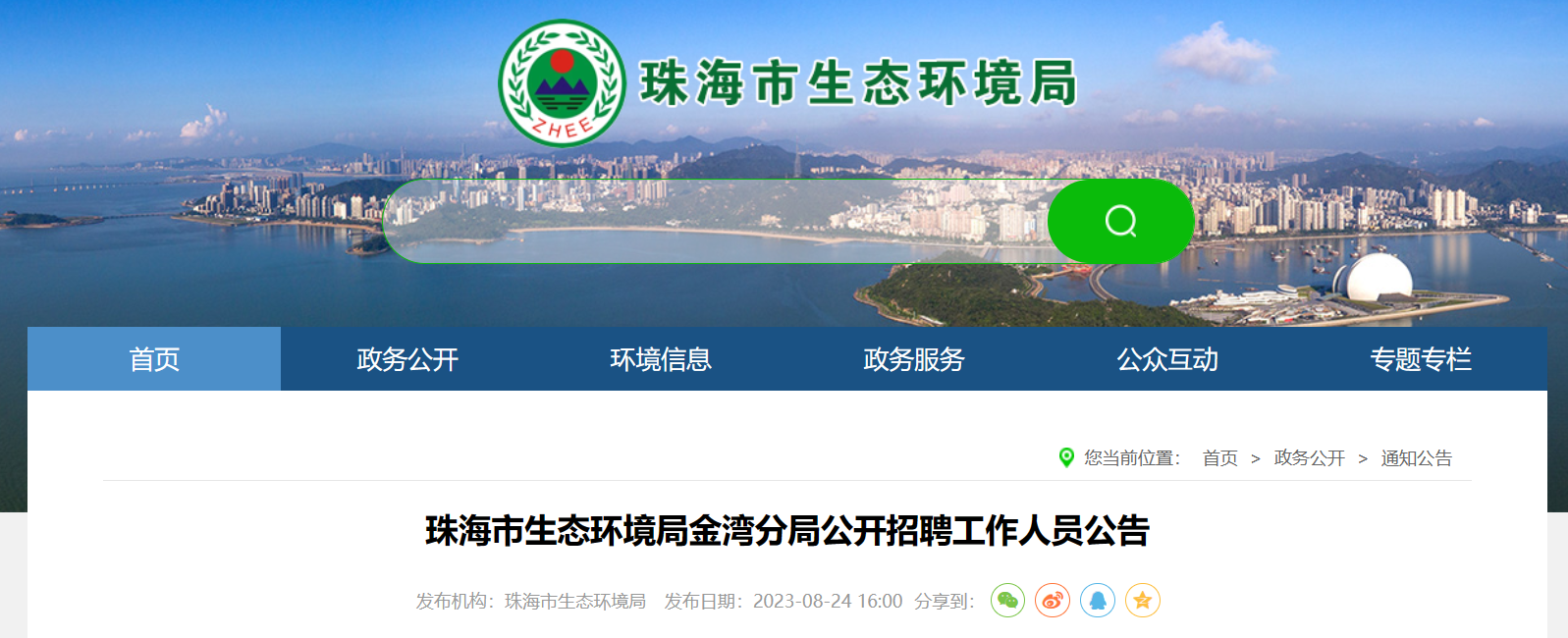 2023年廣東省珠海市生態(tài)環(huán)境局金灣分局招聘1人。報(bào)名時(shí)間:2023年8月25日-8月31日18:00,現(xiàn)將公告原文發(fā)布如下: