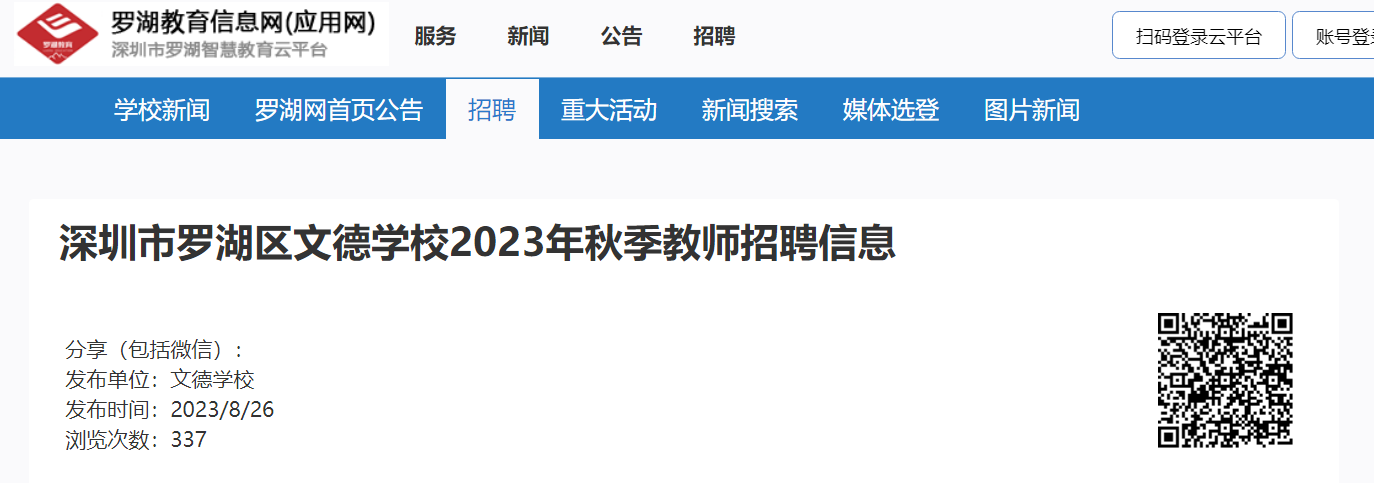 2023年秋季廣東深圳市羅湖區(qū)文德學(xué)校教師招聘信息已發(fā)布,報(bào)名時(shí)間:2023年8月31日前?,F(xiàn)將招聘公告原文發(fā)布如下:
