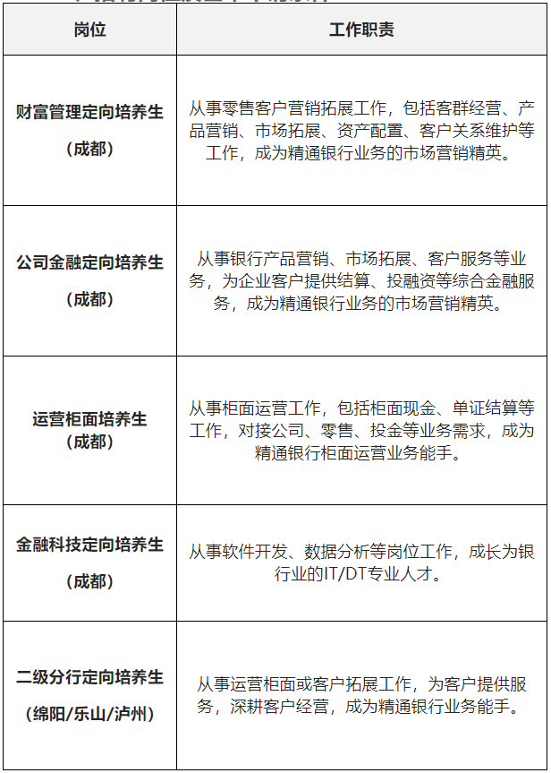 現(xiàn)根據(jù)業(yè)務(wù)發(fā)展與人才培養(yǎng)的需要,招商銀行成都分行面向全國高校招聘2024年應(yīng)屆畢業(yè)生,具體如下: