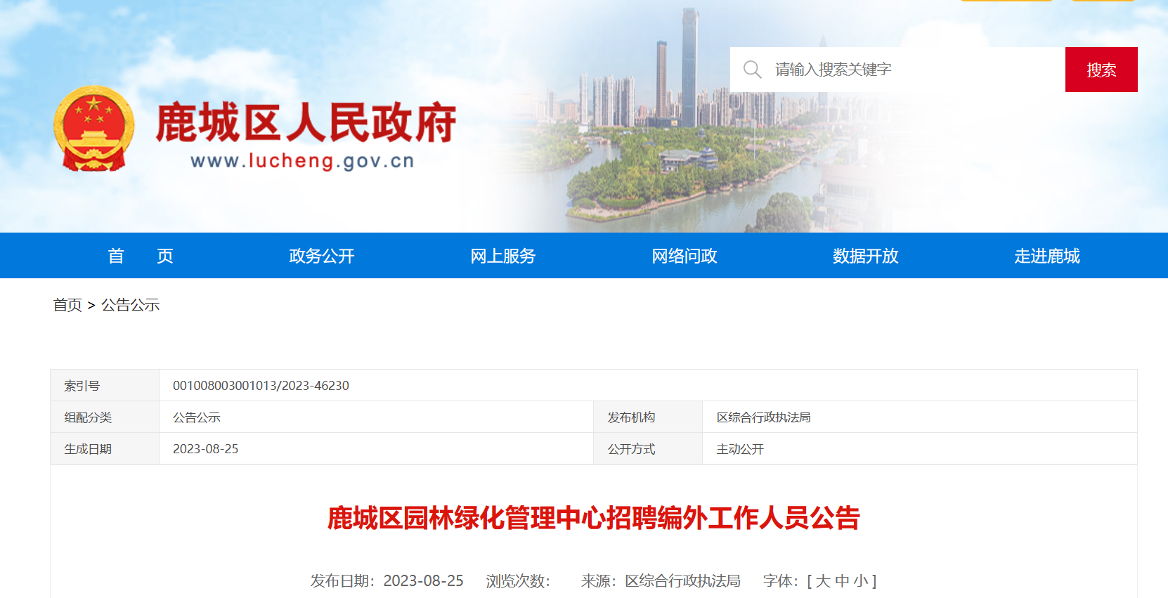 2023年浙江省溫州市鹿城區(qū)園林綠化管理中心招聘編外工作人員5人。報(bào)名時(shí)間:即日起至2023年9月1日?,F(xiàn)將公告原文發(fā)布如下: