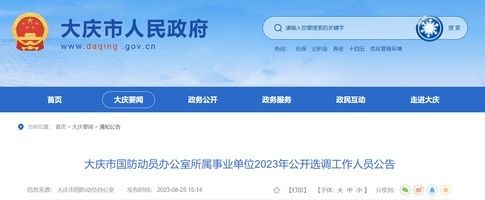 2023年黑龍江省大慶市國(guó)防動(dòng)員辦公室所屬事業(yè)單位選調(diào)4人。報(bào)名時(shí)間2023年9月6日9:00--2023年9月12日17:00?,F(xiàn)將公告原文發(fā)布如下: