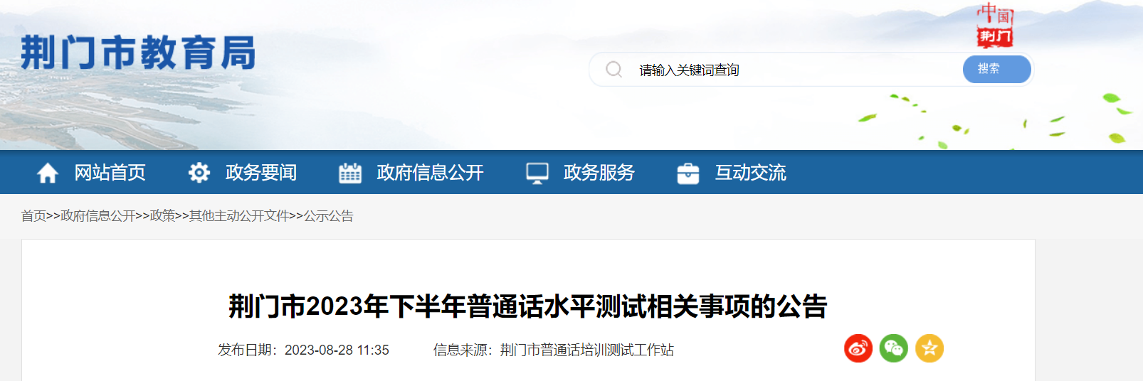 從荊門市教育局獲悉,2023下半年湖北荊門普通話報名時間為9月1日至9月22日,考試時間為10月14日至15日,具體詳情如下: