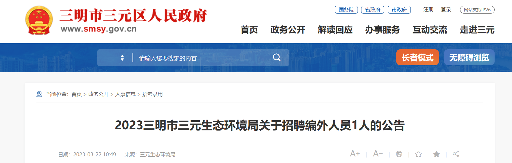 原文標(biāo)題:2023三明市三元生態(tài)環(huán)境局關(guān)于招聘編外人員1人的公告