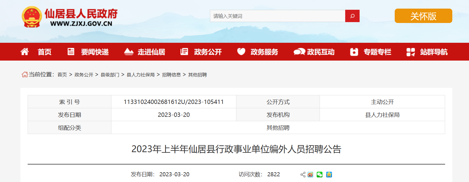 上述招聘信息均可登錄仙居縣人民政府網(wǎng)站(http://www.zjxj.gov.cn/col/col1566997/index.html)政務(wù)公開(kāi)欄查詢(xún),該網(wǎng)站為發(fā)布招聘相關(guān)信息的指定平臺(tái)。