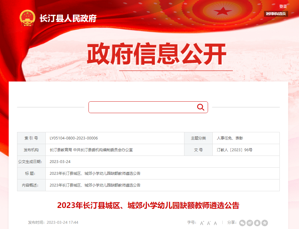 原文標題:2023年長汀縣城區(qū)、城郊小學幼兒園缺額教師遴選公告