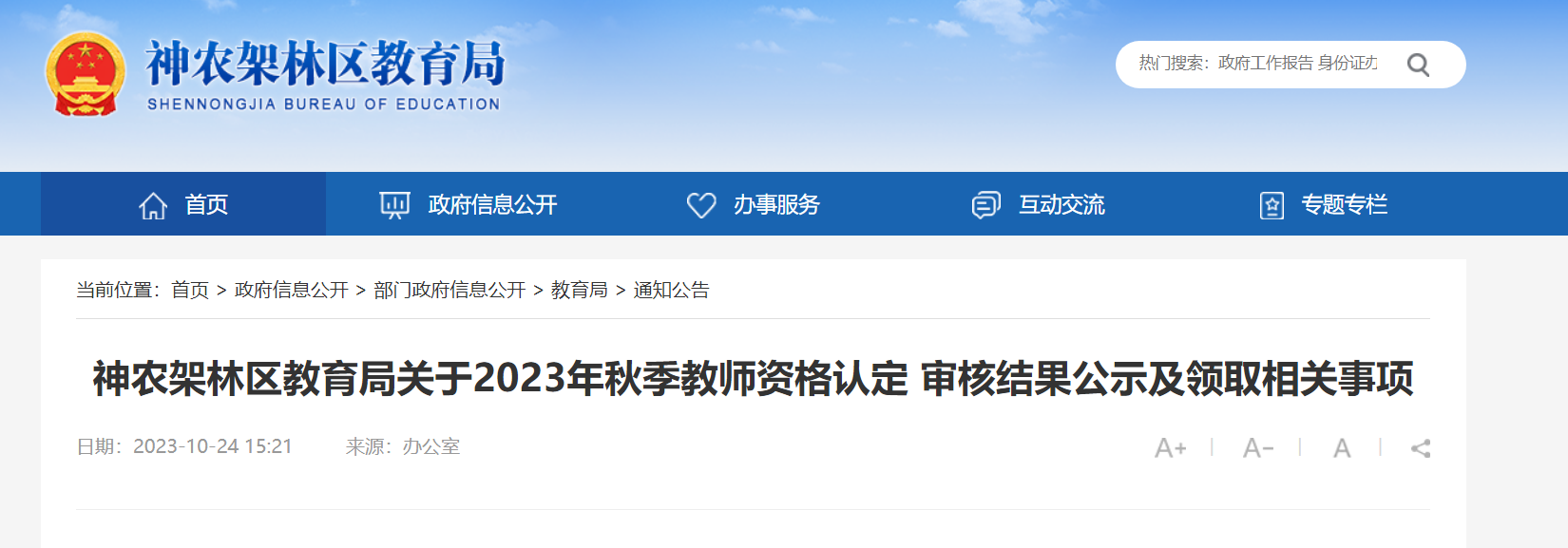 從神農(nóng)架林區(qū)人民政府網(wǎng)獲悉,2023年秋季湖北神農(nóng)架林區(qū)教師資格認定審核結(jié)果公示及領(lǐng)取相關(guān)事項已公布,具體詳情如下: