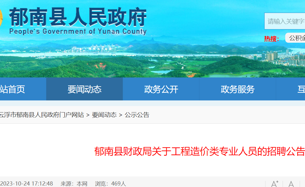 根據(jù)工作需要,云浮市郁南縣財(cái)政局決定面向社會(huì)公開招聘工程造價(jià)類專業(yè)人員若干名。現(xiàn)就有關(guān)事項(xiàng)公告如下: