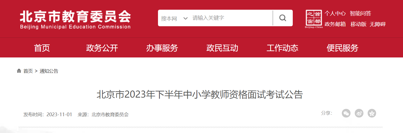 點擊進入>>>2023下半年北京中小學教師資格面試報名入口[已開通]