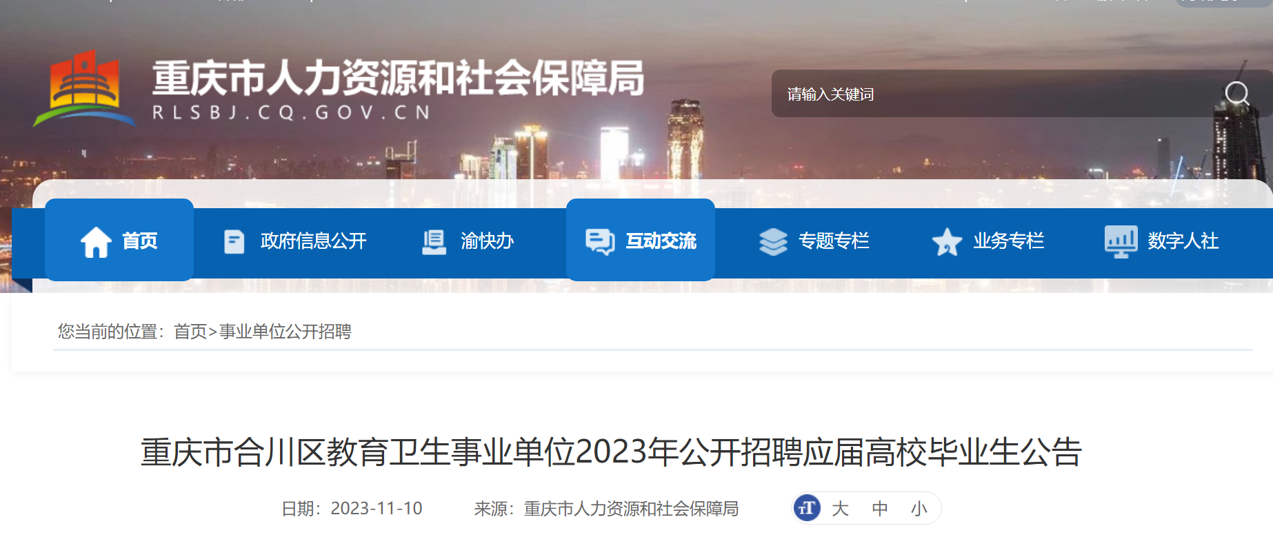 如需在武漢(僅教育崗位)、上海(僅教育崗位)、哈爾濱(僅衛(wèi)生崗位)開展招聘,相關(guān)剩余崗位信息、報名時間、考試考核等招聘事宜將通過重慶市人力資源和社會保障局、合川區(qū)人民政府另行通知,請考生及時關(guān)注。