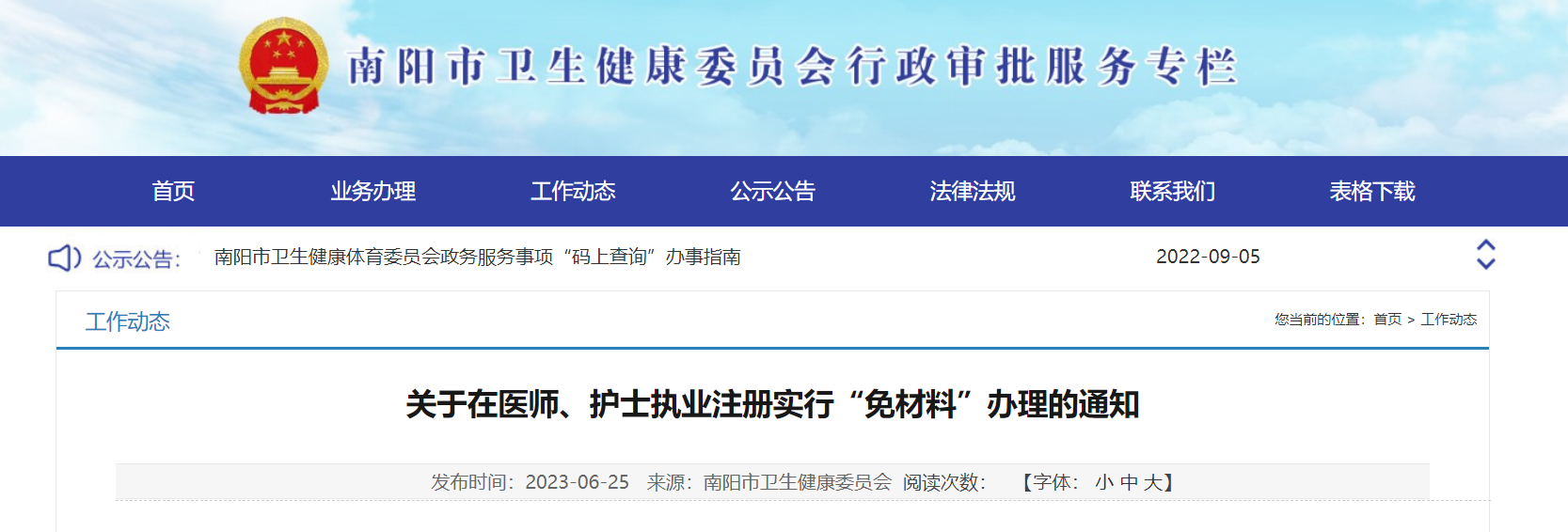 從南陽市衛(wèi)生健康委員會獲悉,河南南陽2023年護(hù)士執(zhí)業(yè)注冊實(shí)行“免材料”辦理的通知已公布,具體詳情如下: