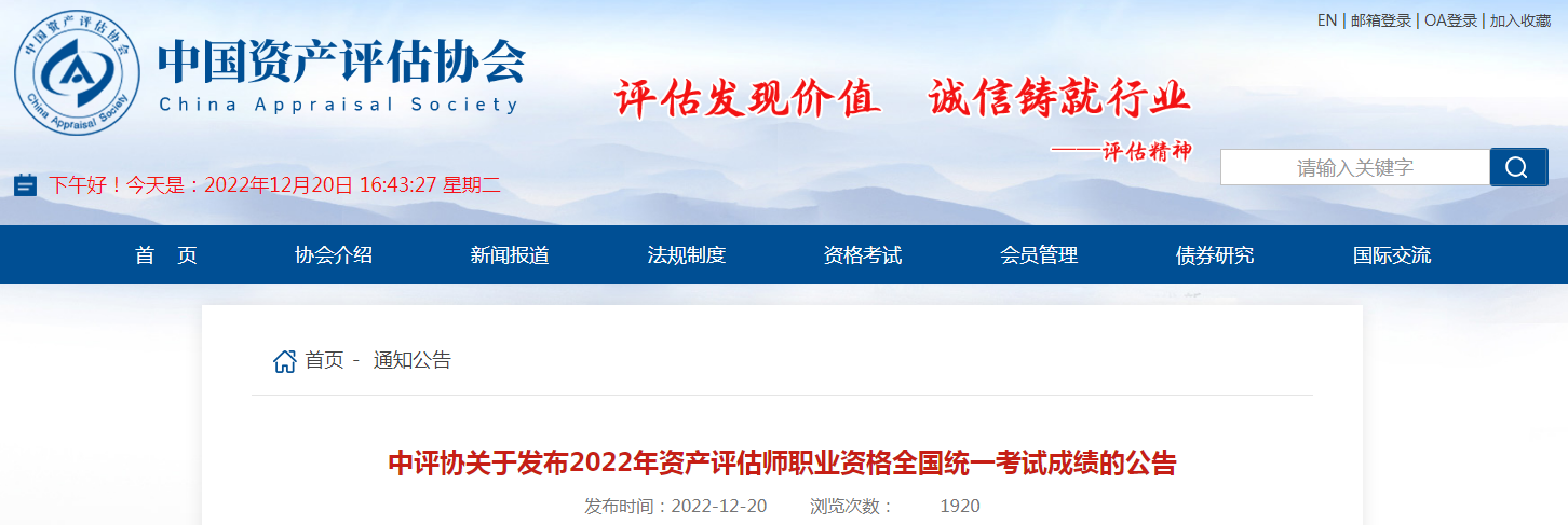 原文標題:中評協(xié)關于發(fā)布2022年資產(chǎn)評估師職業(yè)資格全國統(tǒng)一考試成績的公告