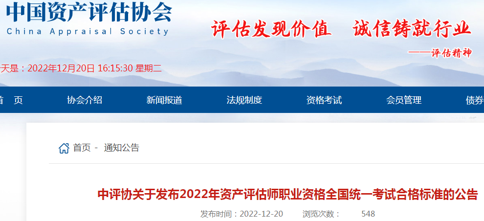 原文標題:中評協(xié)關(guān)于發(fā)布2022年資產(chǎn)評估師職業(yè)資格全國統(tǒng)一考試合格標準的公告