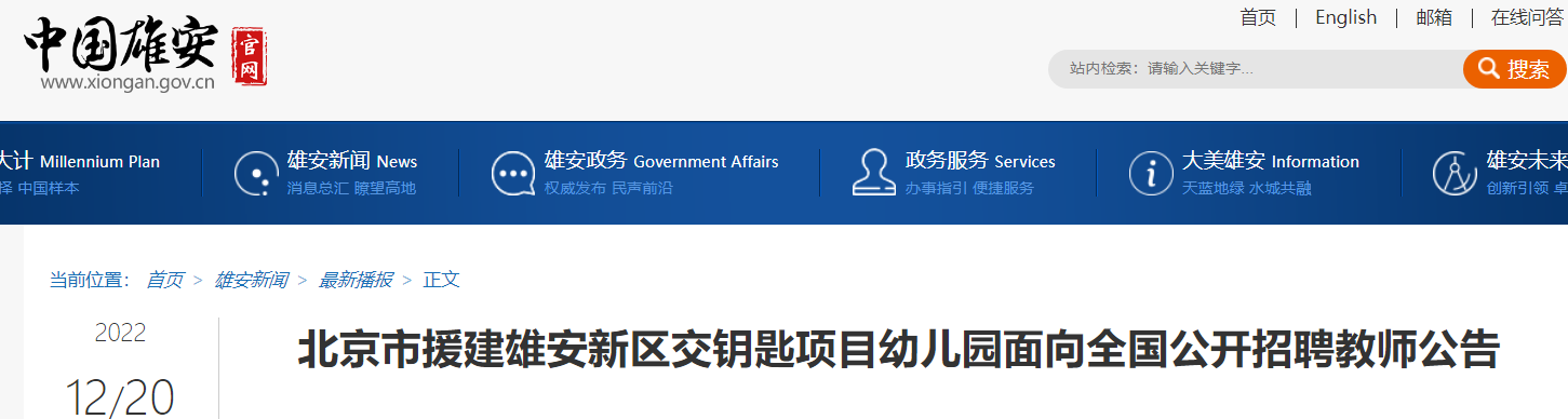 2022北京市援建雄安新區(qū)交鑰匙項(xiàng)目幼兒園公開招聘教職工30名報(bào)名入口