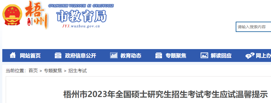 原文標題:梧州市2023年全國碩士研究生招生考試考生應試溫馨提示