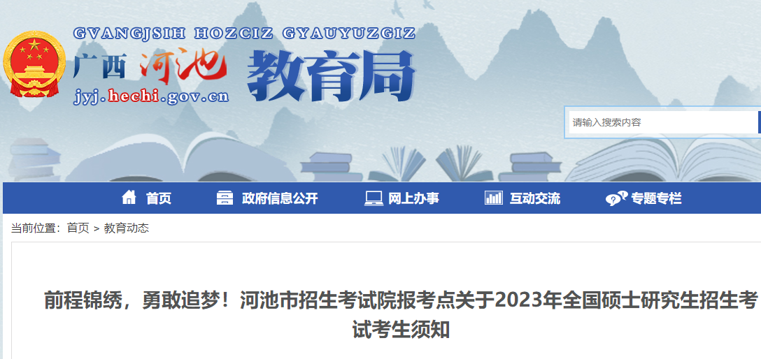 原文標(biāo)題:河池市招生考試院報考點關(guān)于2023年全國碩士研究生招生考試考生須知