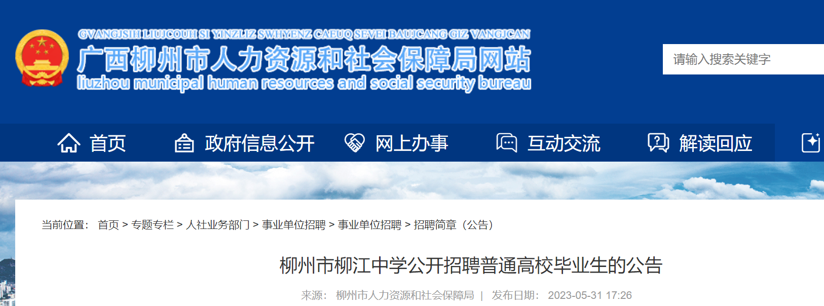 本次公開招聘公告、變更公告等具體事宜在柳州人力資源和社會(huì)保障局網(wǎng)站(rsj.liuzhou.gov.cn/)、柳州市教育網(wǎng)站(jyj.liuzhou.gov.cn)發(fā)布。