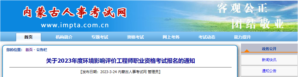 點(diǎn)擊報(bào)名:2023年內(nèi)蒙古環(huán)境影響評(píng)價(jià)工程師報(bào)名入口