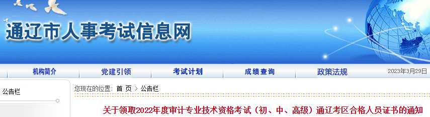 原文標(biāo)題:關(guān)于領(lǐng)取2022年度審計(jì)專業(yè)技術(shù)資格考試(初、中、高級(jí))通遼考區(qū)合格人員證書的通知