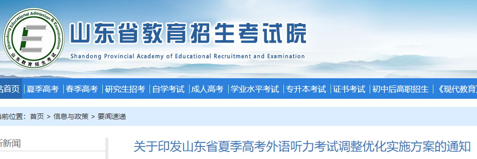 高考頻道從山東省教育招生考試院了解到,山東夏季高考外語聽力考試調(diào)整優(yōu)化實(shí)施方案的通知已公布,具體如下: