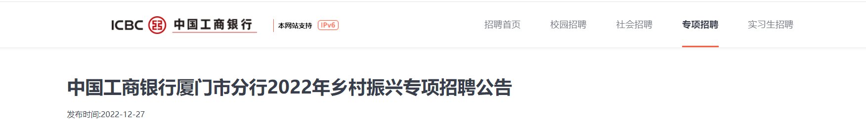 原文標(biāo)題:中國工商銀行廈門市分行2022年鄉(xiāng)村振興專項招聘公告