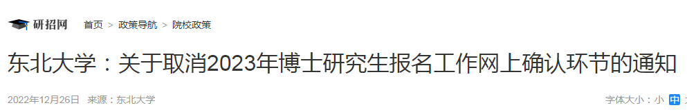 原文標題:東北大學:關(guān)于取消2023年博士研究生報名工作網(wǎng)上確認環(huán)節(jié)的通知