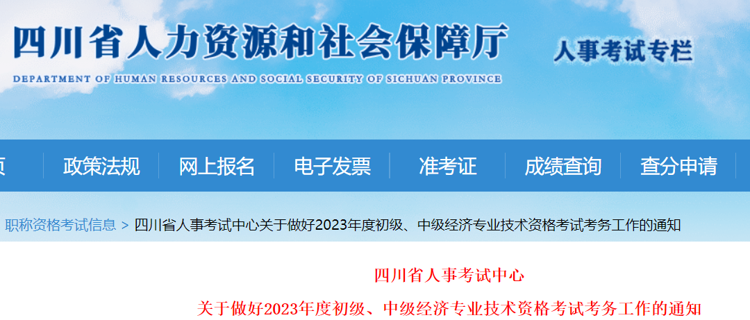 根據(jù)人力資源和社會(huì)保障部人事考試中心《關(guān)于做好2023年度初級(jí)、中級(jí)經(jīng)濟(jì)專業(yè)技術(shù)資格考試考務(wù)工作的通知》(人考中心函〔2023〕37號(hào))及四川省人力資源和社會(huì)保障廳《關(guān)于做好我省專業(yè)技術(shù)人員資格考試告知制有關(guān)工作的通知》(川人社辦發(fā)〔2020〕14號(hào))等文件精神,為切實(shí)做好我省2023年度初級(jí)、中級(jí)經(jīng)濟(jì)專業(yè)技術(shù)資格考試考務(wù)工作,現(xiàn)將有關(guān)事項(xiàng)通知如下: