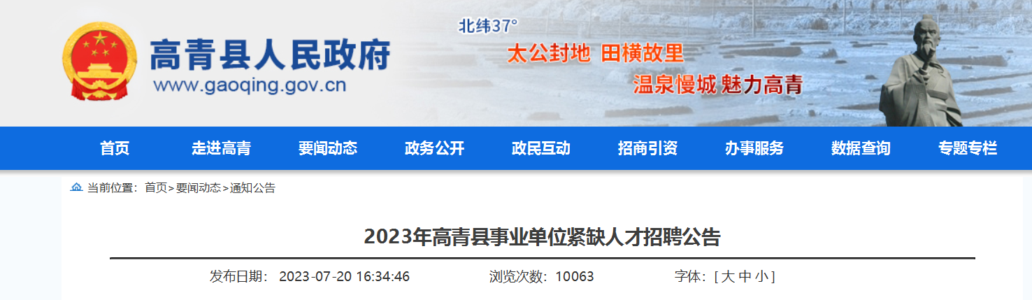 2023年山東省淄博市高青縣事業(yè)單位緊缺人才招聘24人。報(bào)名時(shí)間:2023年7月31日09:00-8月2日12:00?,F(xiàn)將公告原文發(fā)布如下: