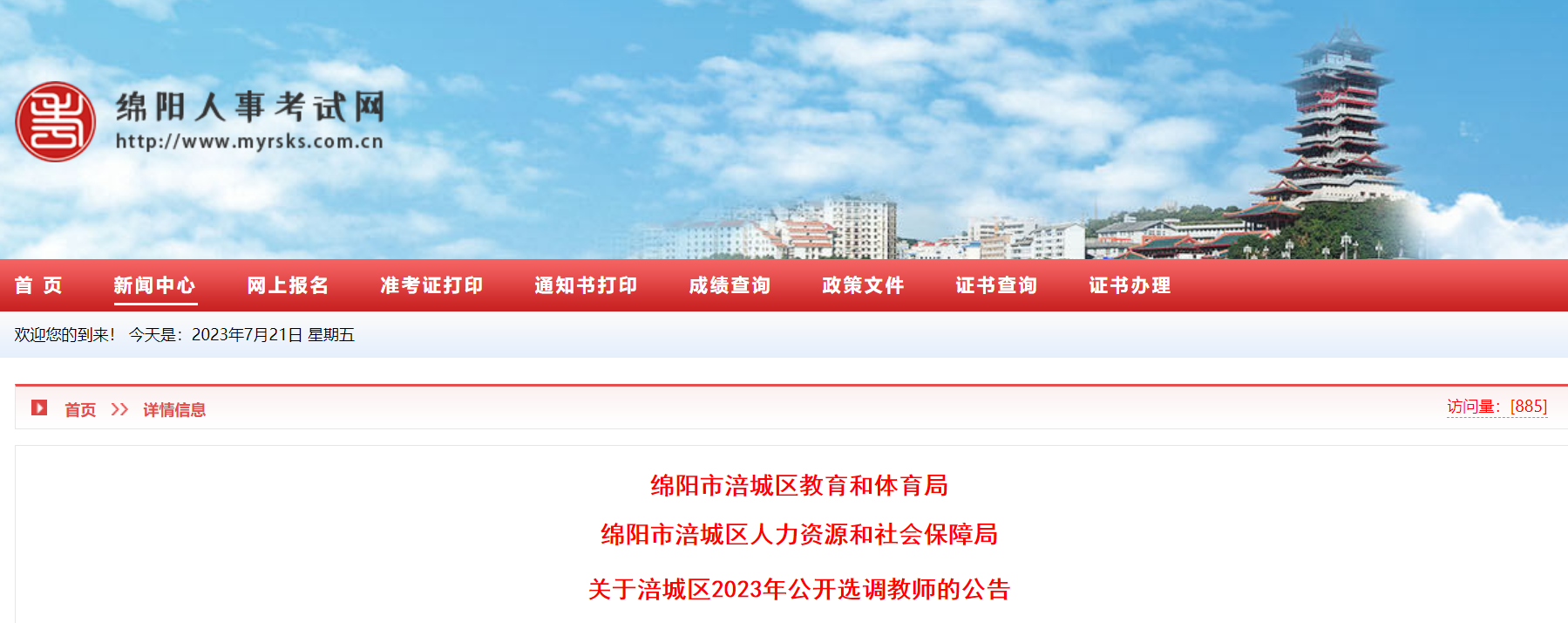 2023四川綿陽涪城區(qū)選調(diào)教師31人,報名時間:2023年7月27日?,F(xiàn)將招聘公告原文發(fā)布如下: