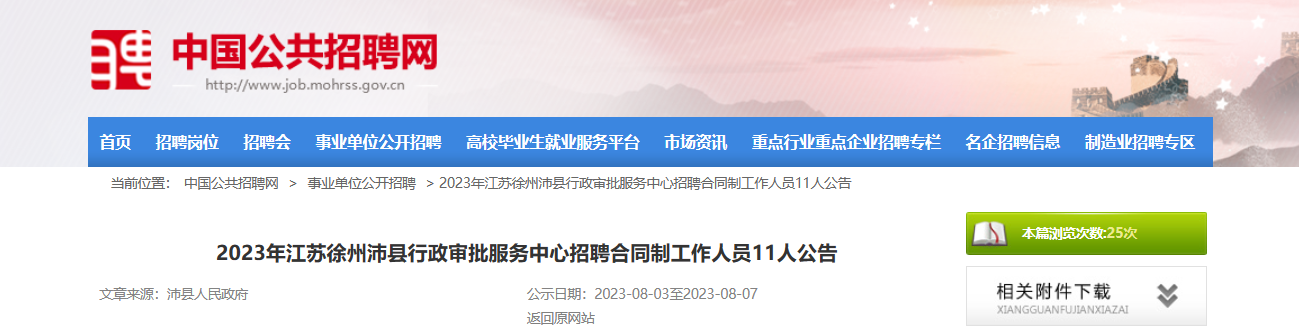 2023年沛縣行政審批服務(wù)中心公開招聘合同制工作人員信息在沛縣人民政府網(wǎng)站公示公告欄目、微信公眾號(hào)(沛縣人社發(fā)布)上公布。