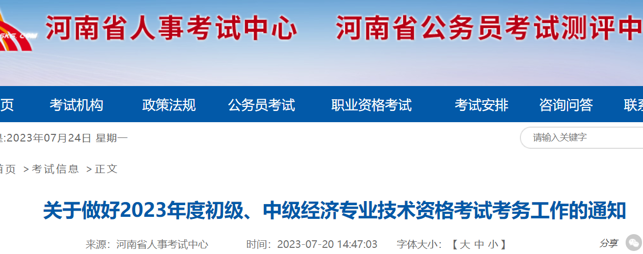 小編根據(jù)河南省人力資源和社會保障廳發(fā)布“關(guān)于做好2023年度初級、中級經(jīng)濟專業(yè)技術(shù)資格考試考務(wù)工作的通知”得知,2023年河南經(jīng)濟師網(wǎng)上報名時間為2023年7月25日至8月5日,考試時間為11月11日、12日舉行,詳情如下: