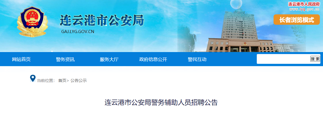 因工作需要,根據(jù)《江蘇省公安機(jī)關(guān)警務(wù)輔助人員管理?xiàng)l例》《連云港市公安機(jī)關(guān)警務(wù)輔助人員管理辦法》《江蘇省公安機(jī)關(guān)警務(wù)輔助人員招聘辦法》等有關(guān)規(guī)定,連云港市公安局決定面向社會(huì)公開(kāi)招聘警務(wù)輔助人員61名,有關(guān)事項(xiàng)公告如下:
