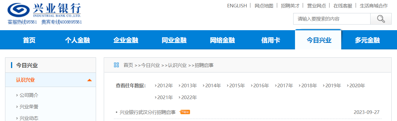 2023年興業(yè)銀行湖北武漢分行招聘啟事已發(fā)布,現(xiàn)將招聘公告發(fā)布如下: