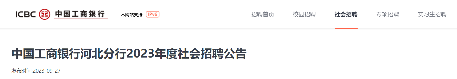 2023年度中國工商銀行河北分行社會招聘70人,報名時間:2023年10月17日截止,現(xiàn)將招聘公告發(fā)布如下: