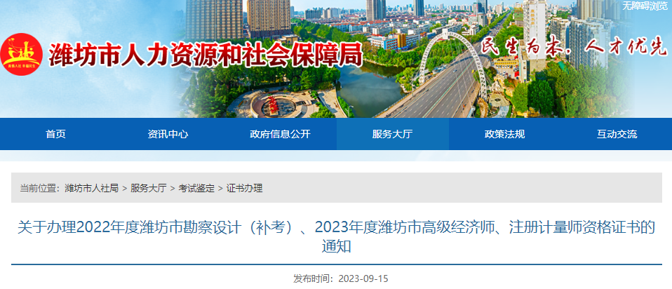 2022年度濰坊市勘察設(shè)計(jì)(補(bǔ)考)、2023年度濰坊市高級經(jīng)濟(jì)師、注冊計(jì)量師資格考試合格人員證書已由省人事考試中心下發(fā)我市,現(xiàn)將證書辦理有關(guān)事項(xiàng)通知如下: